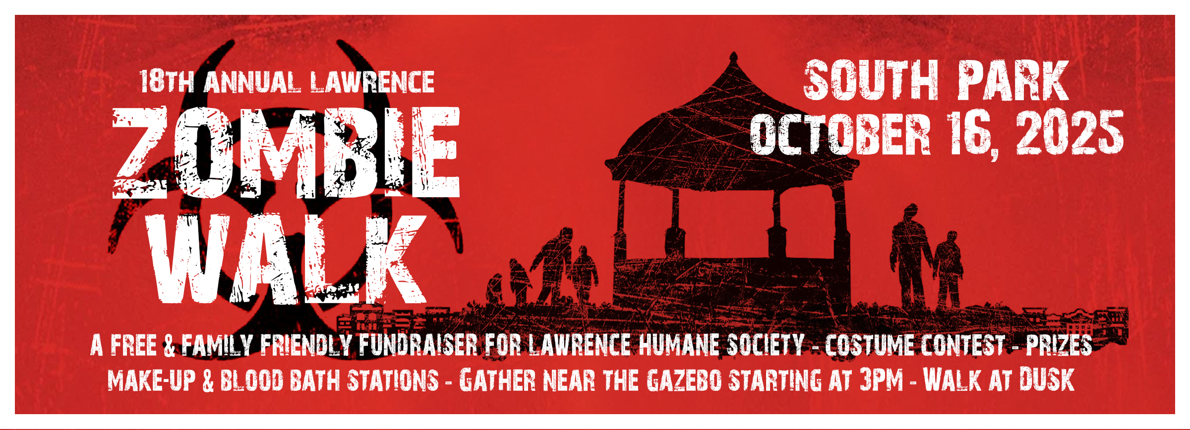 The Lawrence Zombie Walk is an annual event in Lawrence, Kansas. We dress up as zombies and walk the length of downtown Mass Street.